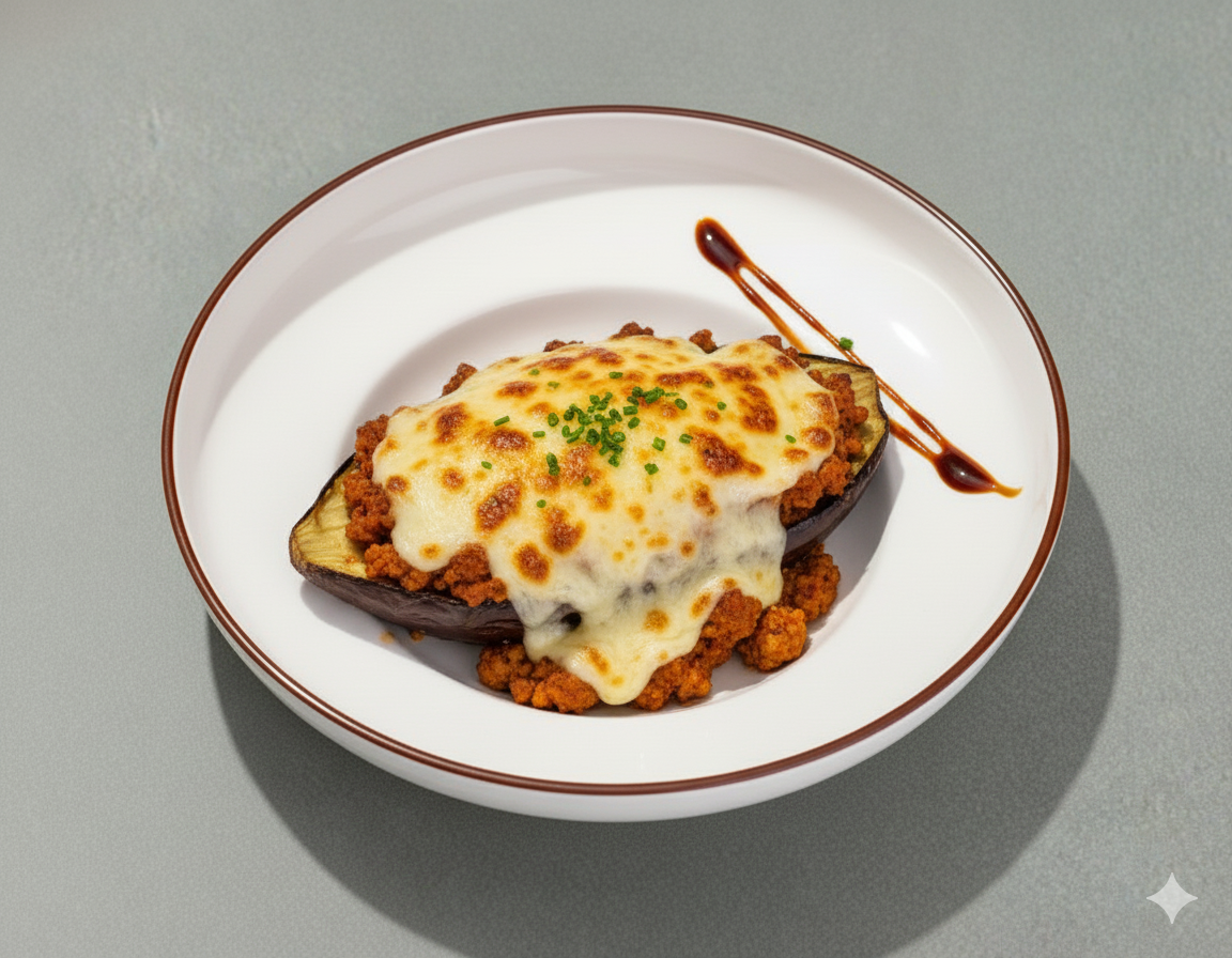 Berenjena 63,09%, carne picada de pavo 13,51%, carne contramuslo de pollo 13,51%, tomate frito (tomate, aceite de oliva, azúcar, sal), cebolla, zanahoria, queso crema [leche pasteurizada de vaca, cuajo microbiano, cultivos lácteos, almidón (tapioca) y sal], aceite de oliva, sal, ajo, pimienta blanca y mozzarella ( LECHE pasteurizada de vaca, sólidos LACTEOS, sal, fermentos LÁCTICOS, ácido cítrico, coagulante y antiaglomerante (fécula de patata).